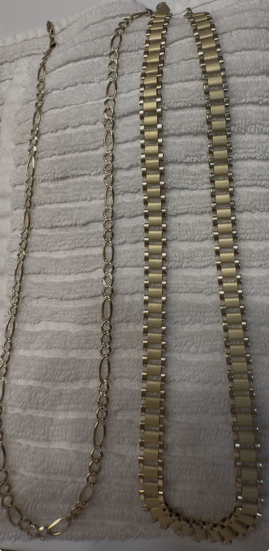 2 Chains looking to trade( Looking for a larger Rolex/Milano Chain trade I can add Cash if necessary ❗️ 1 Rolex Chain 22 inch 10mm (22.5grams) 1 Figaro Diamond Cut Chain 22inch 3.5mm (13.6 grams)