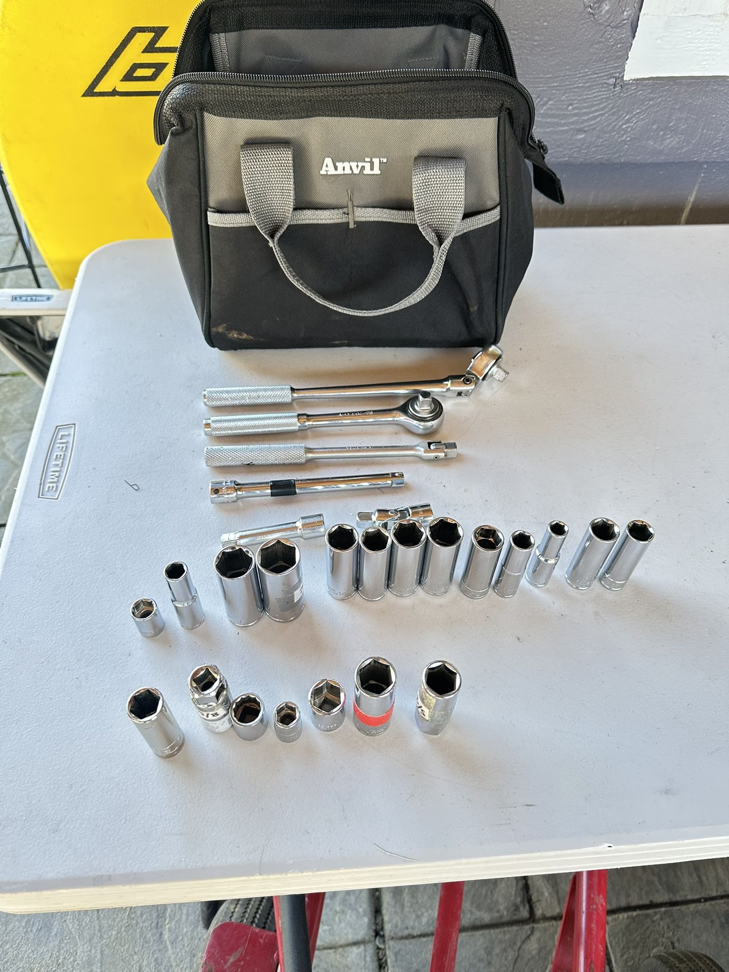 3/8” Ratchet 4 Extensions, Sockets