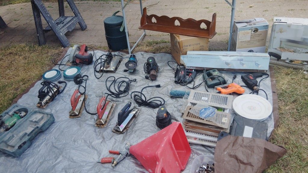 Garage Sell Grinders, Buffet Warmer, Carpet Irons ,Makita Drill Set