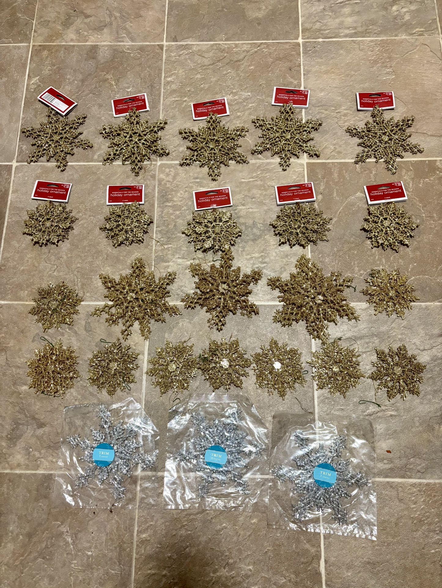 Perfect for weddings, holiday parties, baby showers, holiday decor, wedding showers, or ornaments. Gold snowflakes: 40 count - 4”x4” 20 count - 6”x6” Silver snowflakes: 6 count - 6”x6” Pickup only SE 24th and Belmont