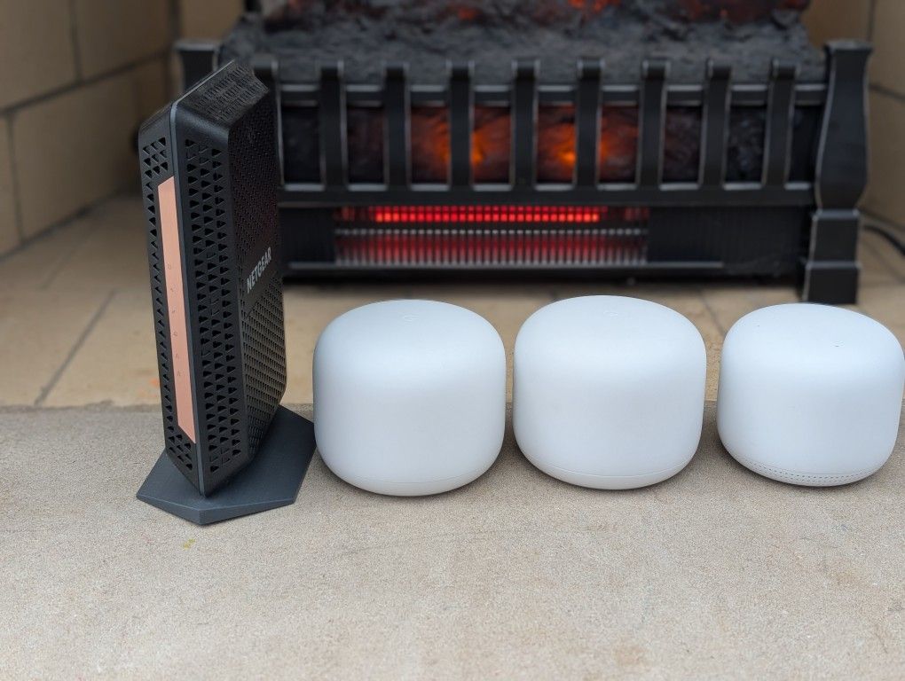 You are getting complete home networking solutions. Includes, Netgear CM1100 Cable modem speed up to 1gig, 2 Google nest WiFi Routers and 1 nest point with built-in audio speaker. Covers up 2500 sqft home. Message me for more details.