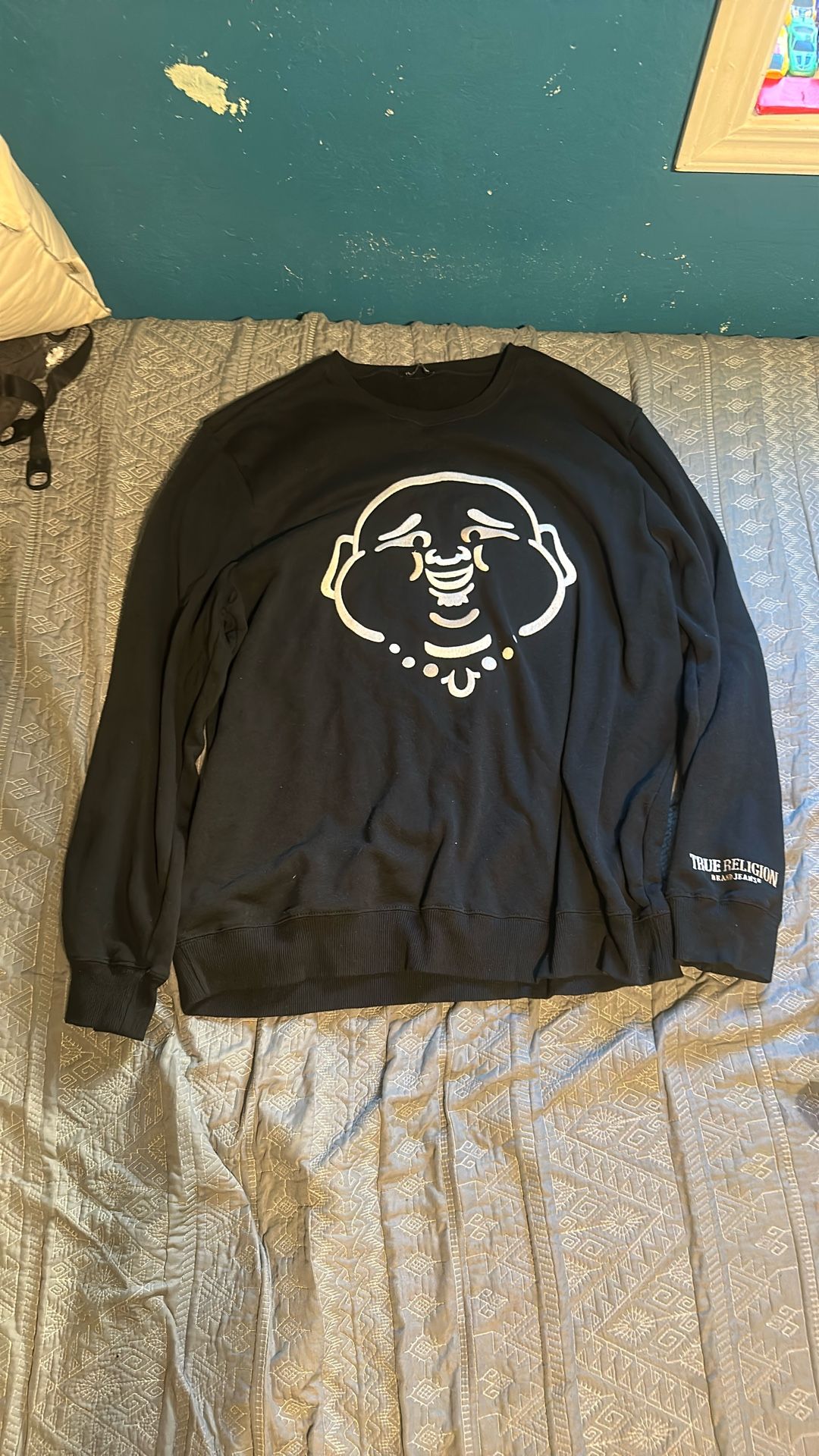 True Religion Men's Black LS Crewneck Sweatshirt size L/XL