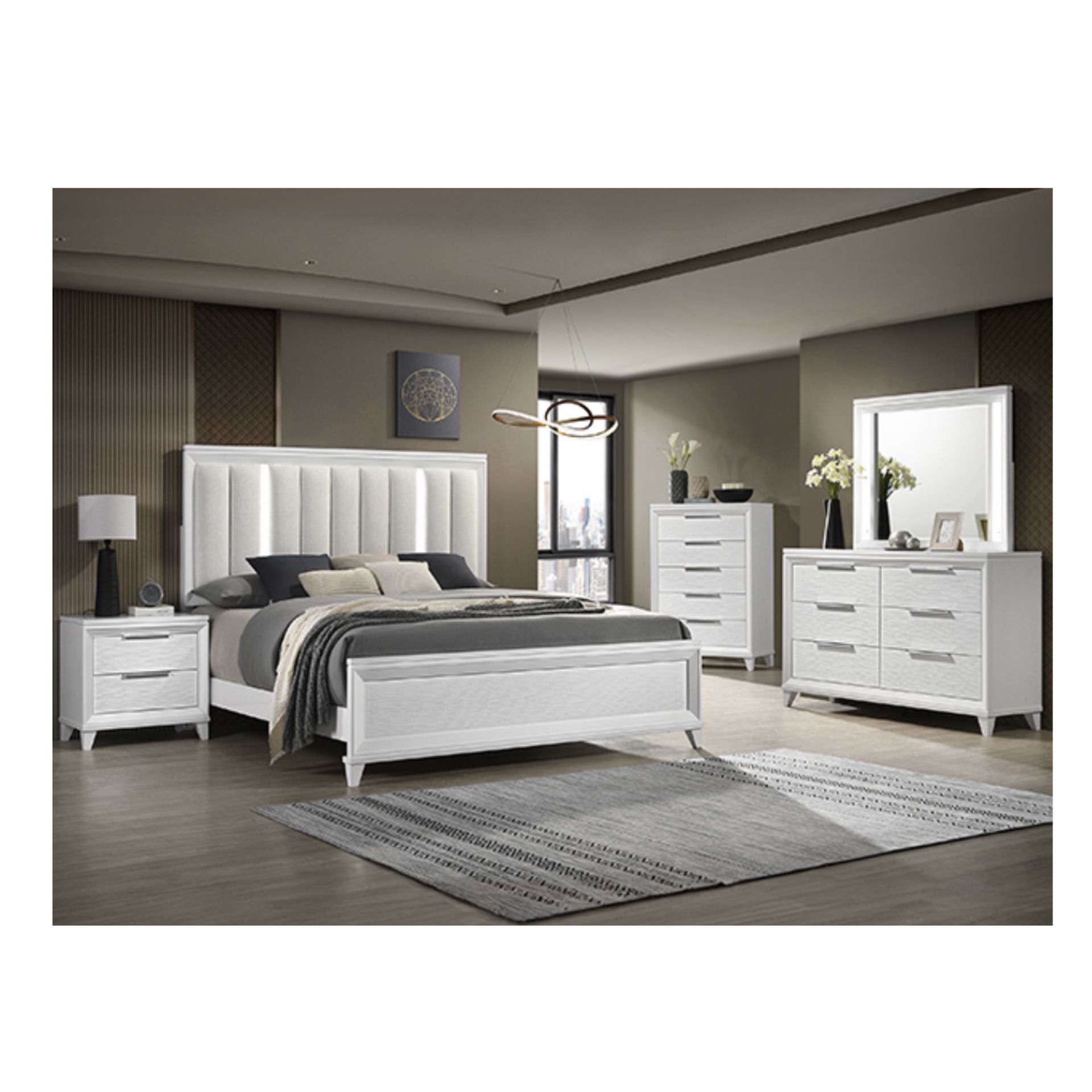 Bed, Dresser, Mirror, Nightstand