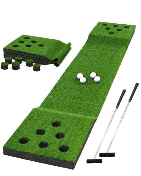 MD Sports Golf Pong Game Set,100inch,Green,Includes 2 Putters and 4 Balls. $60 The MD Sports Golf Pong Game Set is made of high-quality simulated grass turf, just like real grass for your best putting experience. Pretty easy to set up this long putting green. Just take it out of the box, unfold or roll it out and you are ready to play and have fun! Super easy to move around, fold it up when you are done and take wherever you like. Tailgating, BBQ's, parties, camping or to the beach. This game takes up very little space in your house, office or car. It is extremely durable and light weight. Play this game indoors our outdoors. Most of all, have fun!