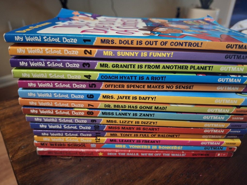 Mu Weird School books,author Dan Gutman, 1 to 12, and 2 extra from the same author. Selling for 30 dollars or 4 dollars each.