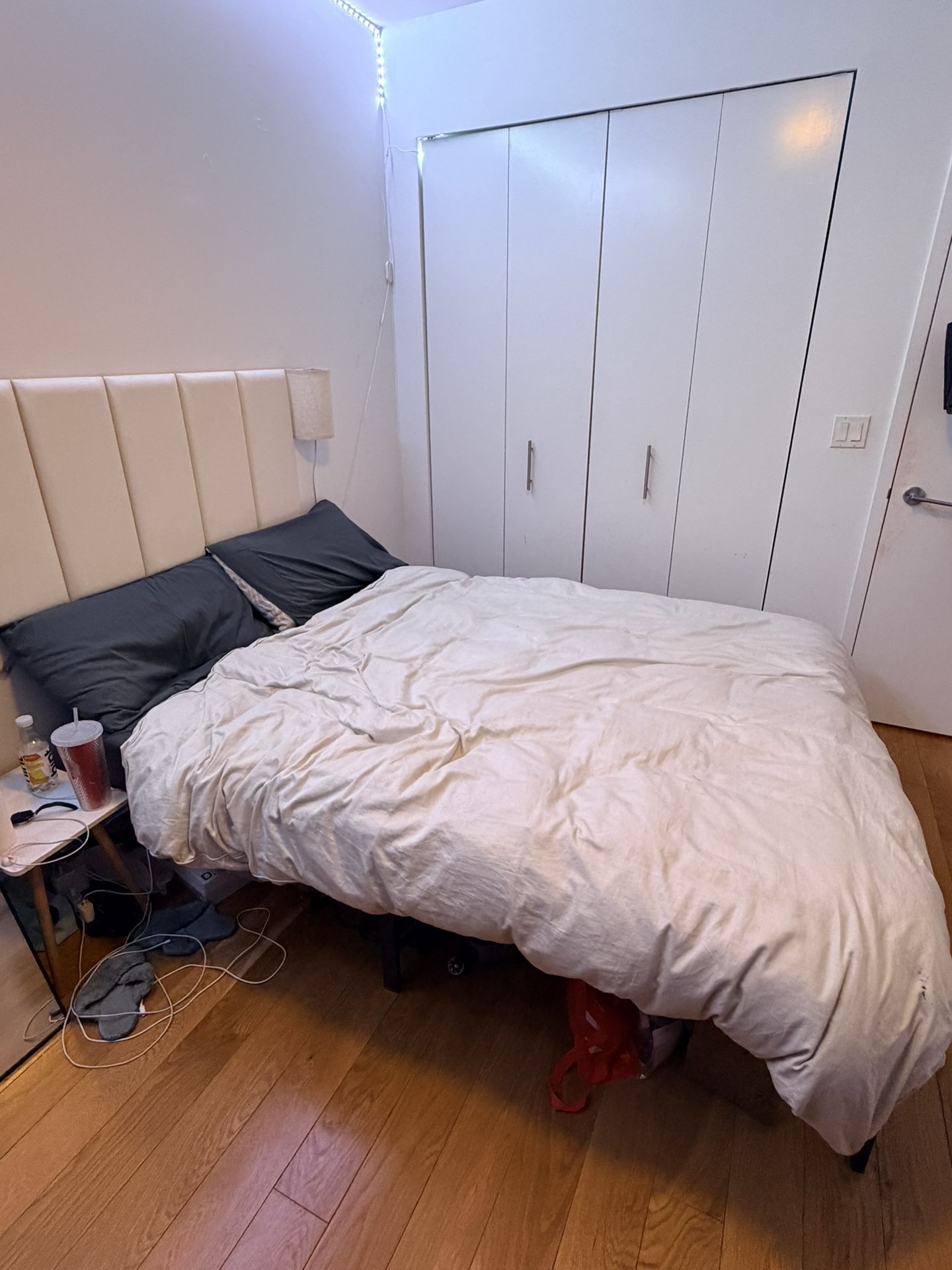 queen sized mattress, box, down comforter, and two pillows!! flexible on whatever you want with it!