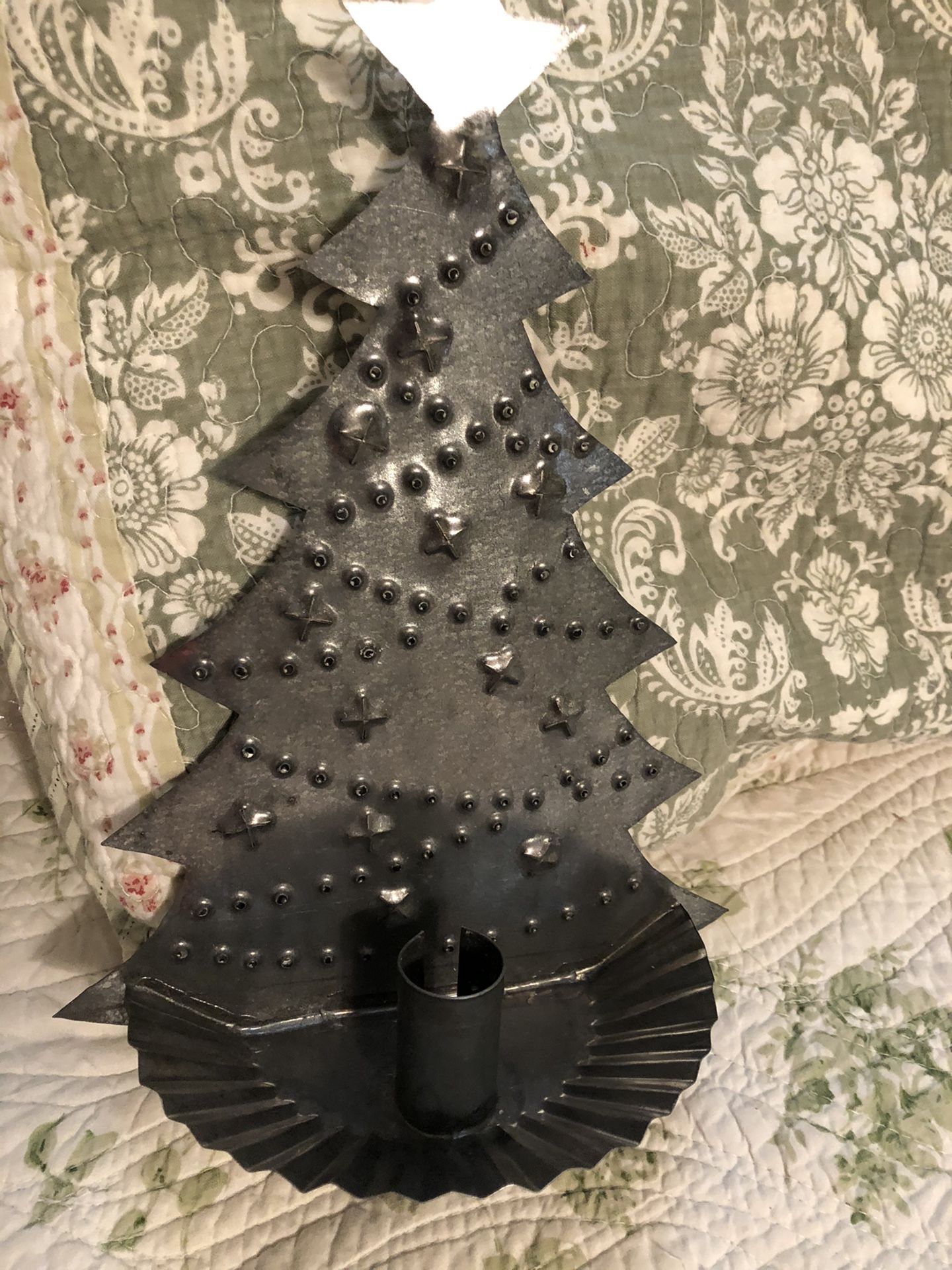 Galvanized metal Christmas tree candle holder