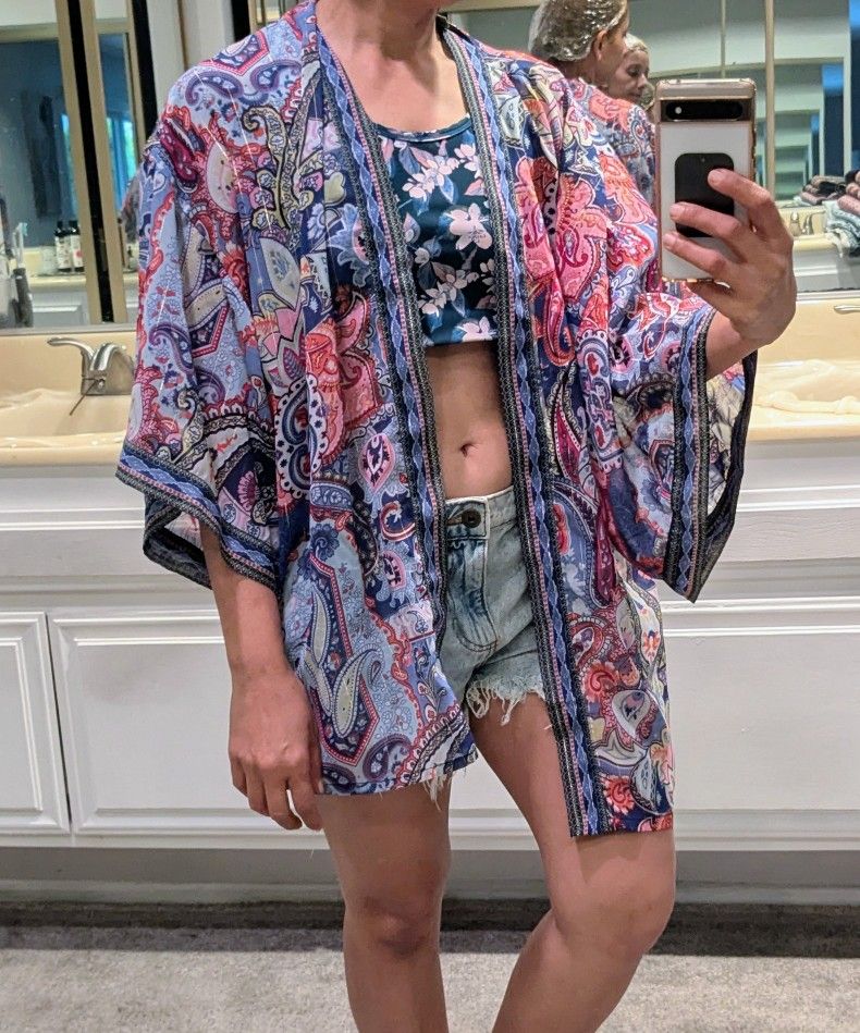 Paisley Design Kimano Inspired Silhouette Outer Layer, Beach Wear, House Robe. One Size. 40"x95". Stunning Statement Piece! Versatile