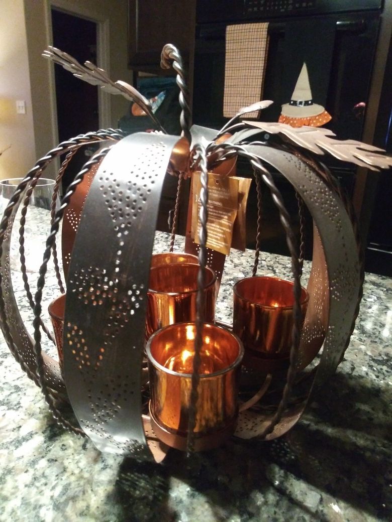 Harvest metal pumpkin candle holder