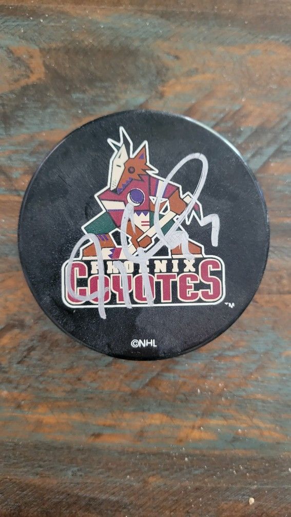 Jeremy Roenick Signature On A Phoenix Coyotes Hockey Puck