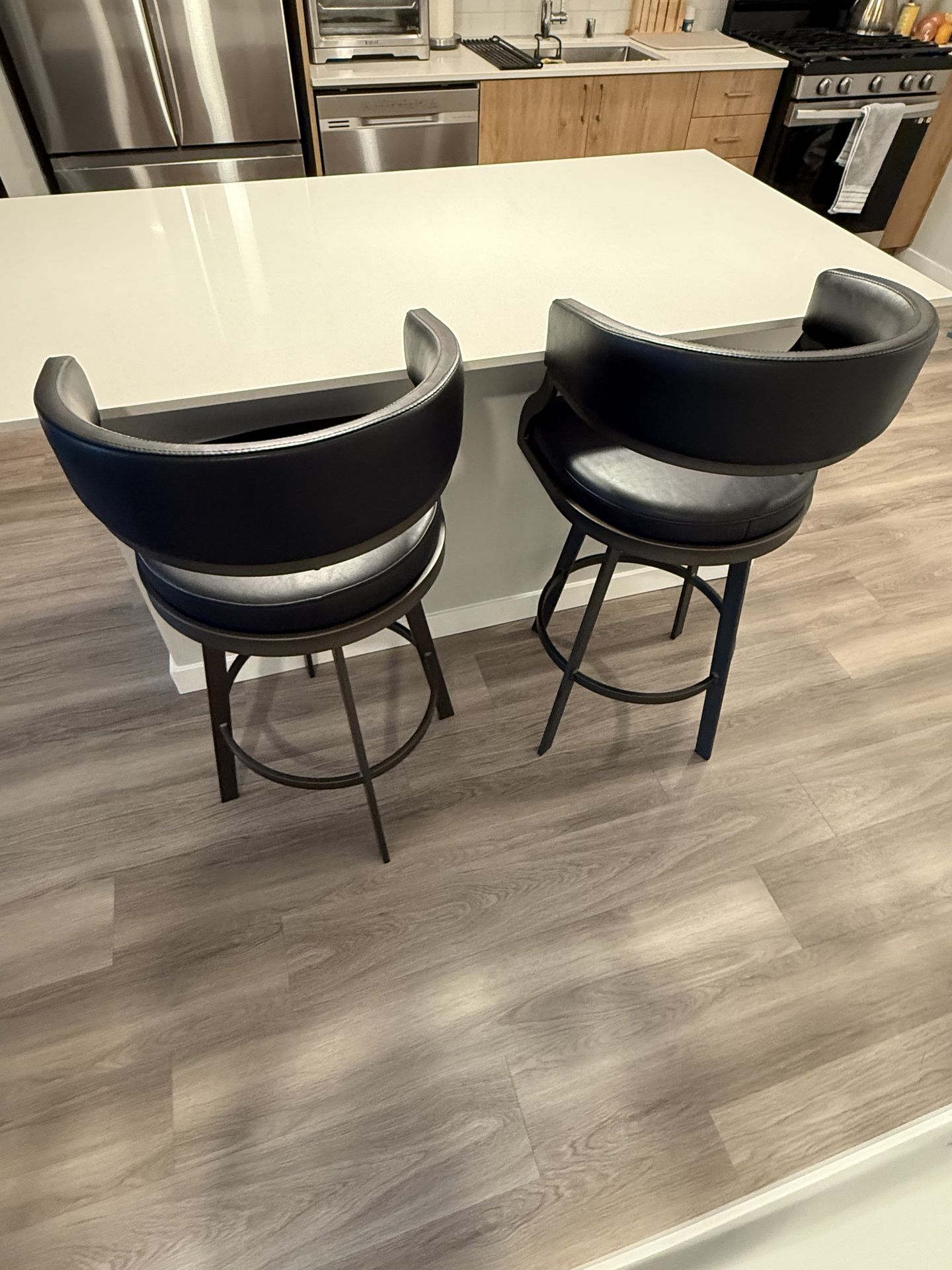 Like new (2) leather counter-height bar stools with 360° swivel.