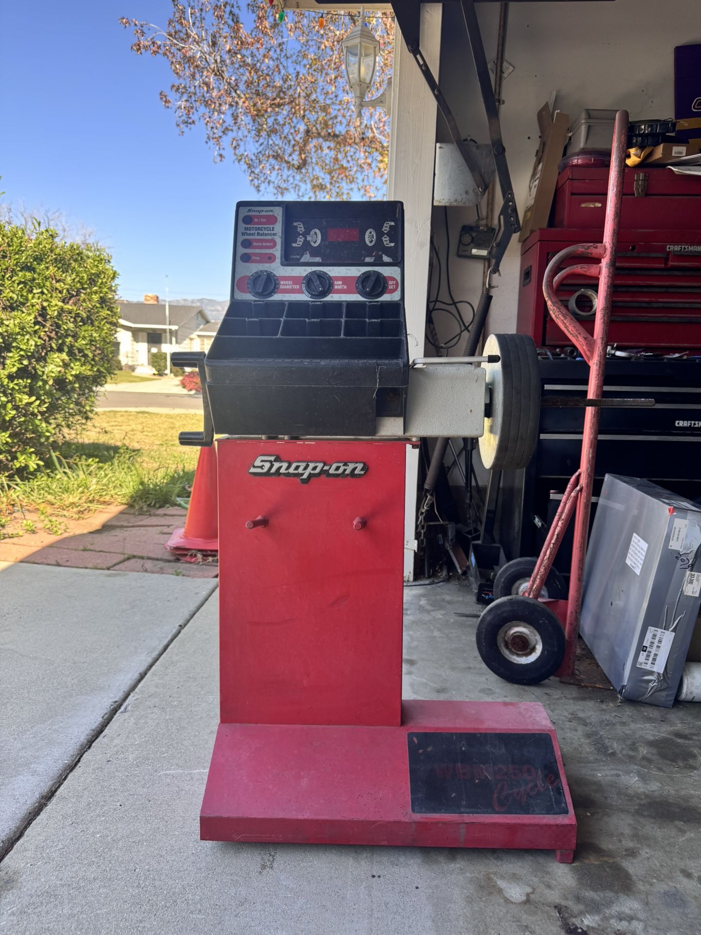selling my vintage snap on motorocycle tire balancer, still works just missing a few pieces. asking $300 no longer has space for it.