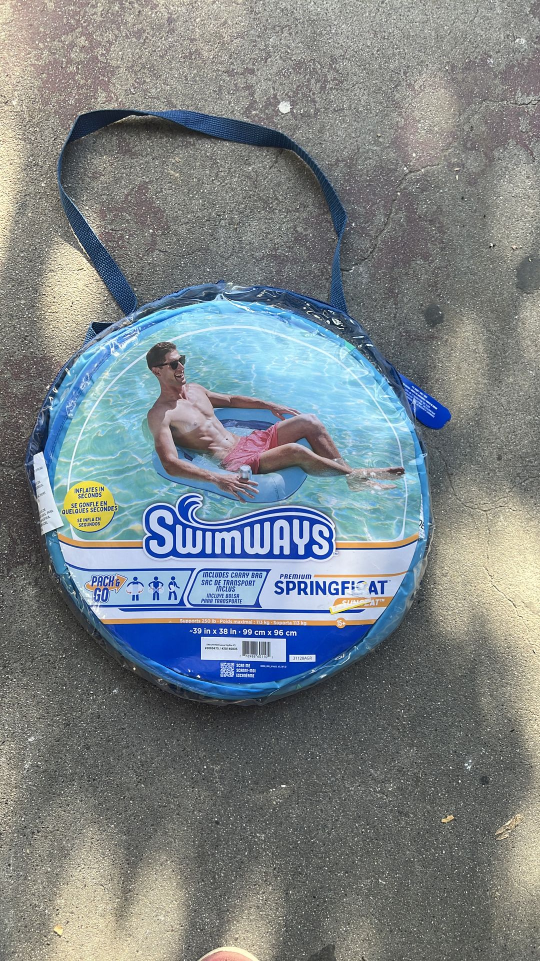 SwimWays Spring Float - Tumbona reclinable prémium para piscina, flotadores inflables para adultos con inflado rápido para edades de 15 años en adelante, color a. New. Condición Sale separate. Size. 39in x38 in 99 cm x96. Cm soporta 250. Lb poise.