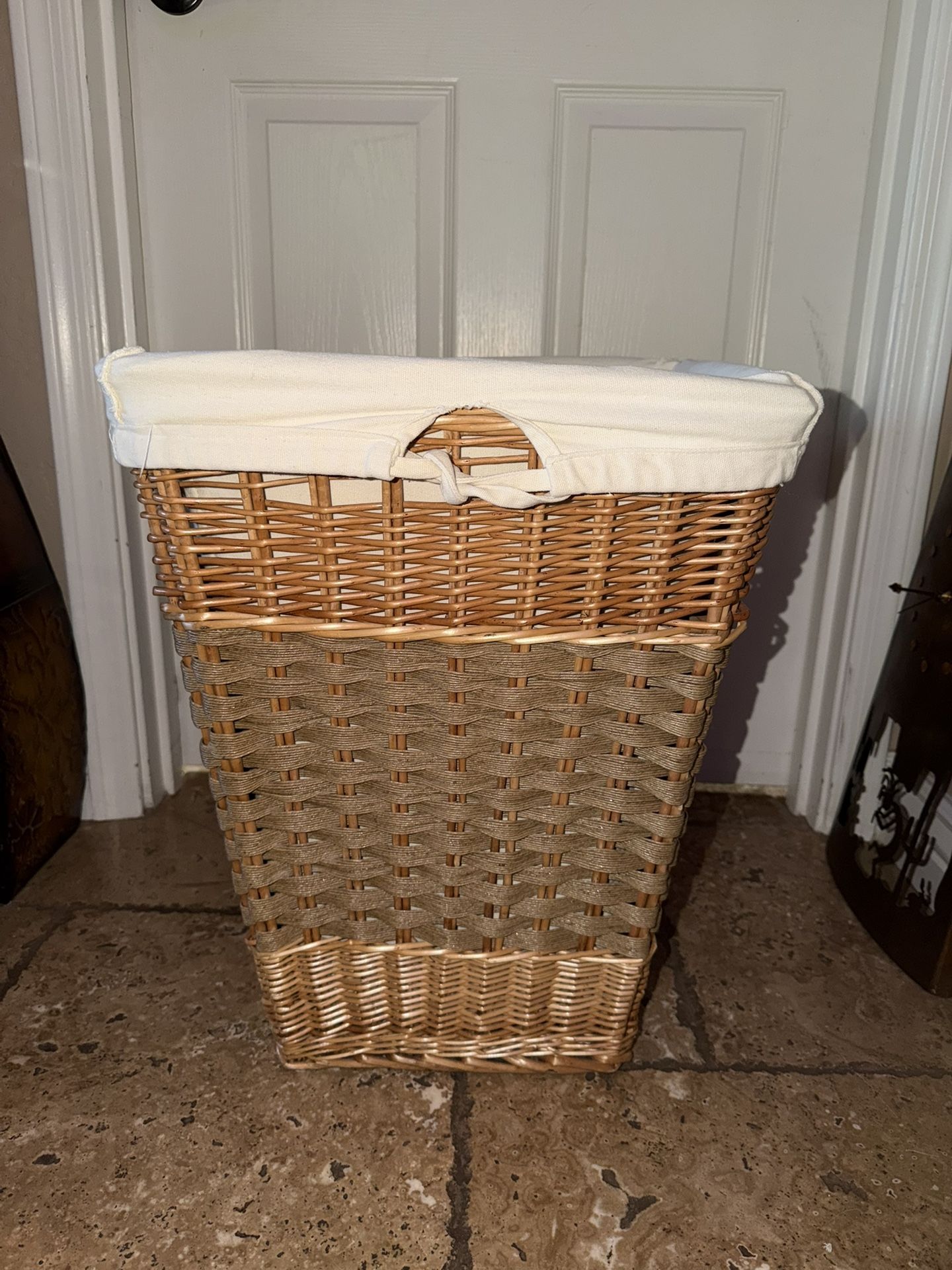 Selling a Wicker Laundry Basket . Dimensions are: 21.5” tall x 14” wide. Asking $15. Located in N. Scottsdale. Crossroads are Pinnacle Peak and Hayden. Willing to meet.