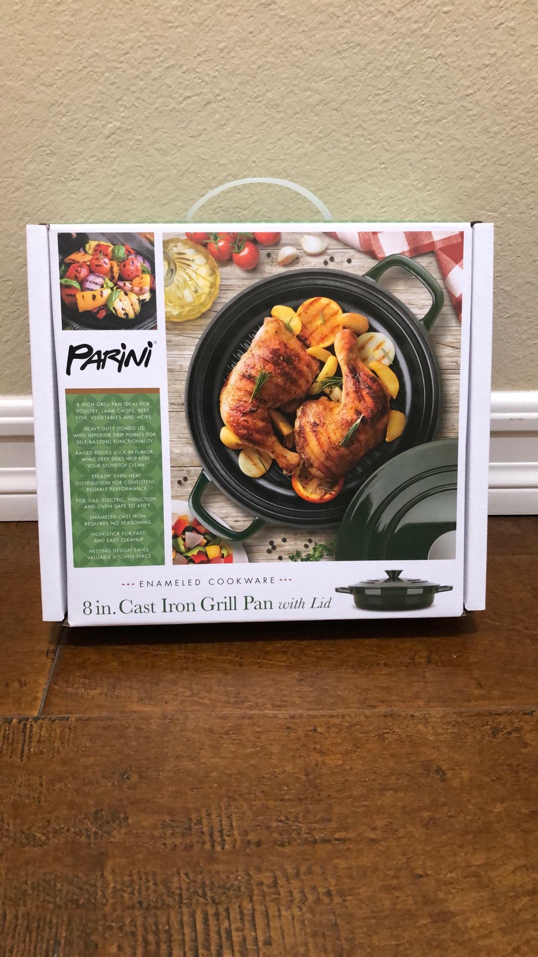 Perini 8 inch cast iron grill pan with lid