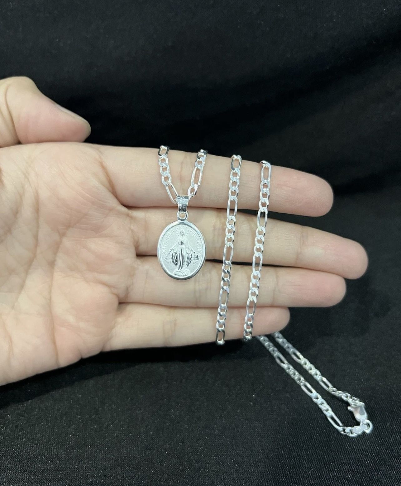 925 Sterling Silver Virgin Miraculous Virgen Milagrosa & Figaro Chain