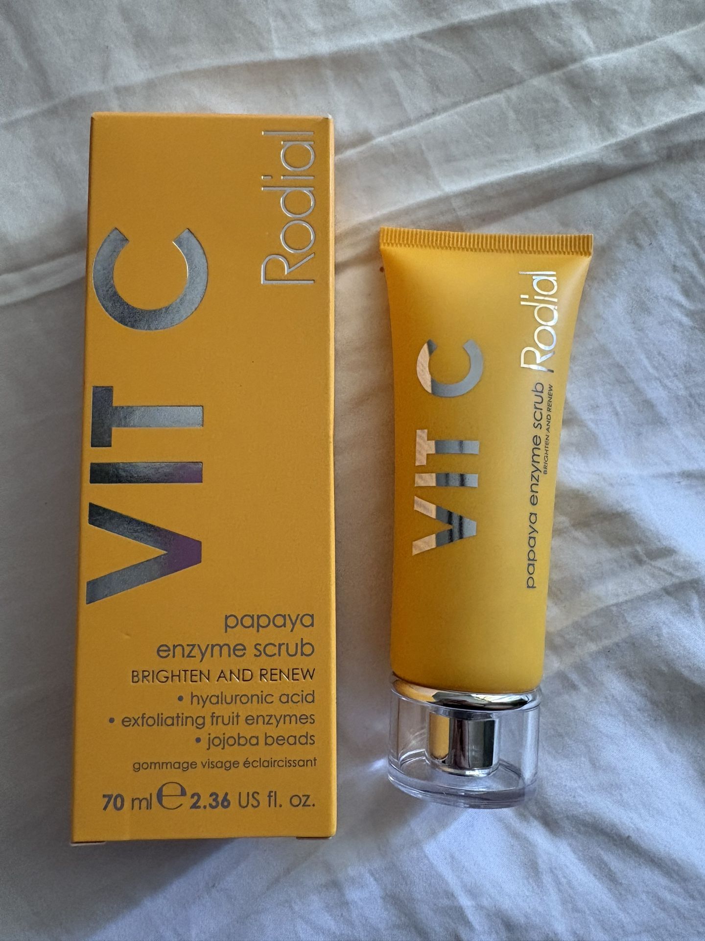 Brand new Retail price 22 Selling $5 Product Information This daily cleanser contains a complex combination of acids and vitamin c, known for its skin brightening effects, to make skin look luminous and youthful. Also formulated with fruit AHAs to exfoliate the skin and tighten pores to reveal a renewed complexion. Benefits Tighten Pores Leaves skin glowing