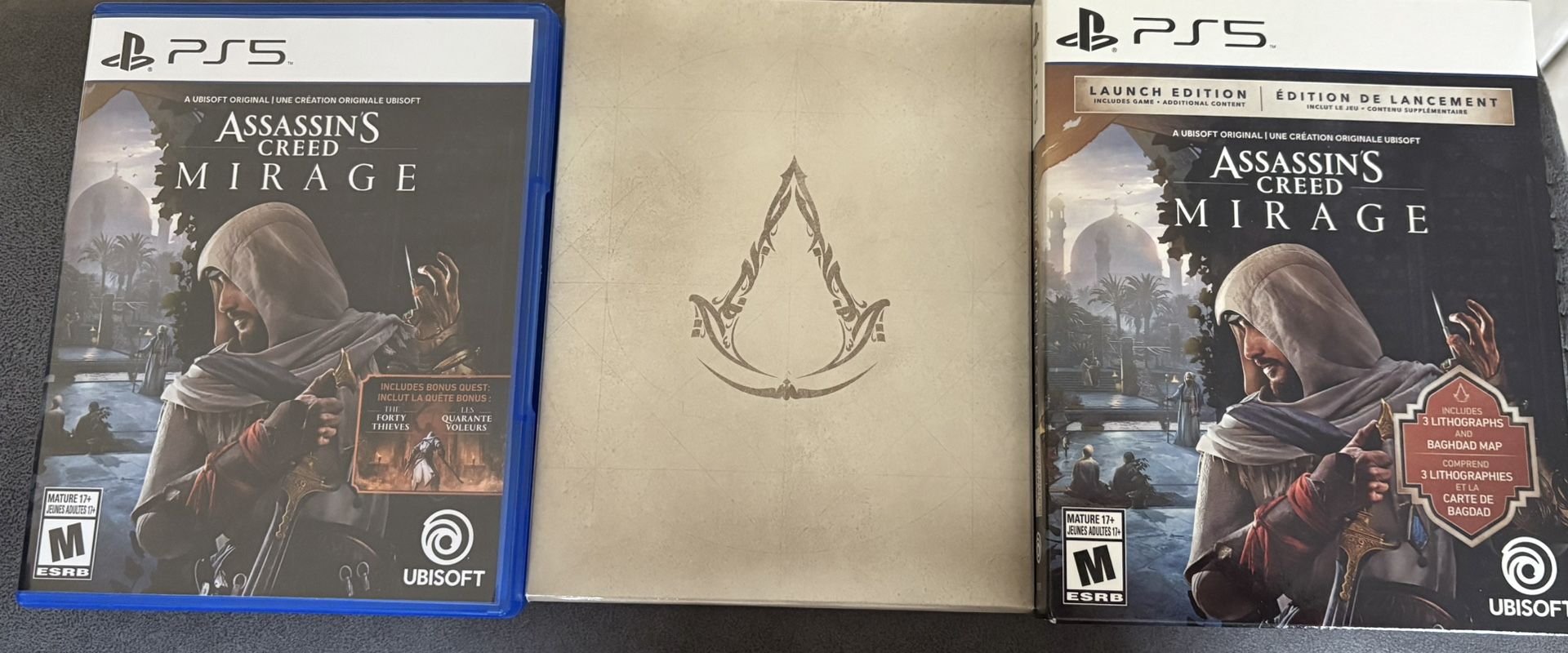 Assassins Creed Mirage Launch Edition What’s included: Lithographs Disc Game case Map Like New Price is non-negotiable