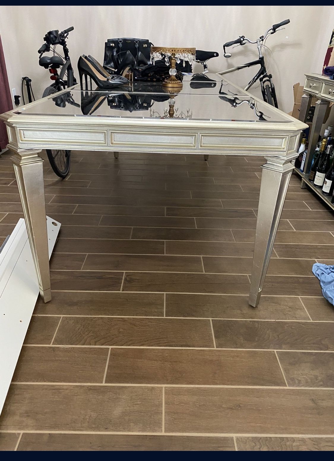 Best offer! Zgallerie Regal dining table only. Champagne color. See photos. Size in photos from website. Perfect condition. Minor scratch. Best offer! Must disassemble and pick up.