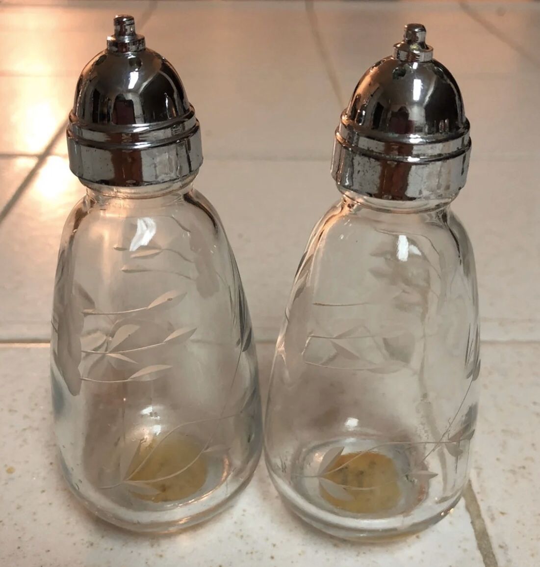 Viantage Original Princess House Heritage Etched Glass Salt & Pepper Shakers