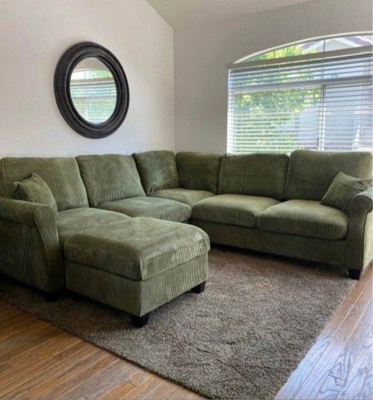 ✅️✅️️✅️4 pc Sage cordury fabric upholstered sectional sofa with ottoman✅️✅️