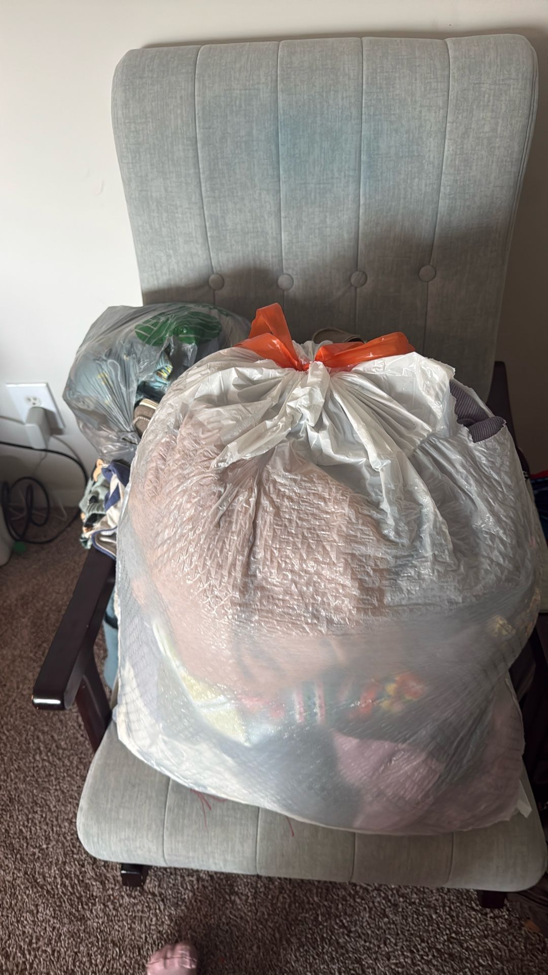 Free baby boy clothes and free rocking chair, the chair has marker all over it but it’s free!