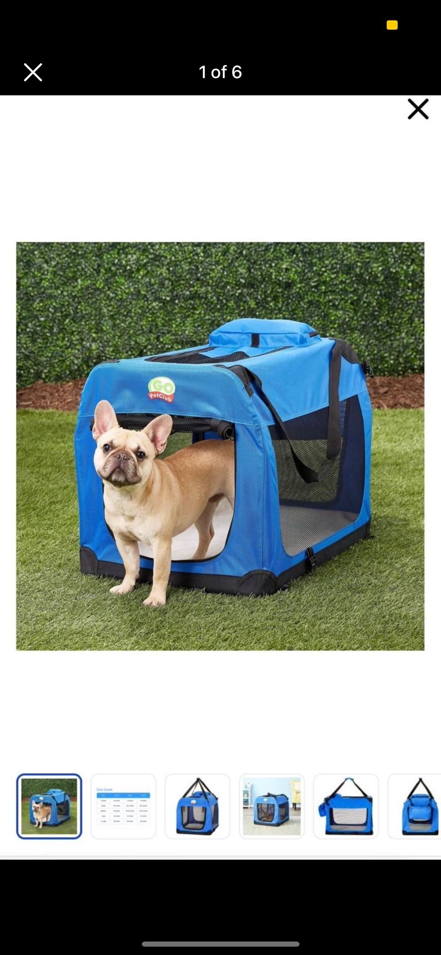 Selling a brand new dog crate size small. Still in the box never opened. Bought by mistake. 28-in L x 20.5-in W x 20-in H Exactly as the picture, blue color . Max weight- up to 45 lb. Pick up only, 1st comes 1st serves.
