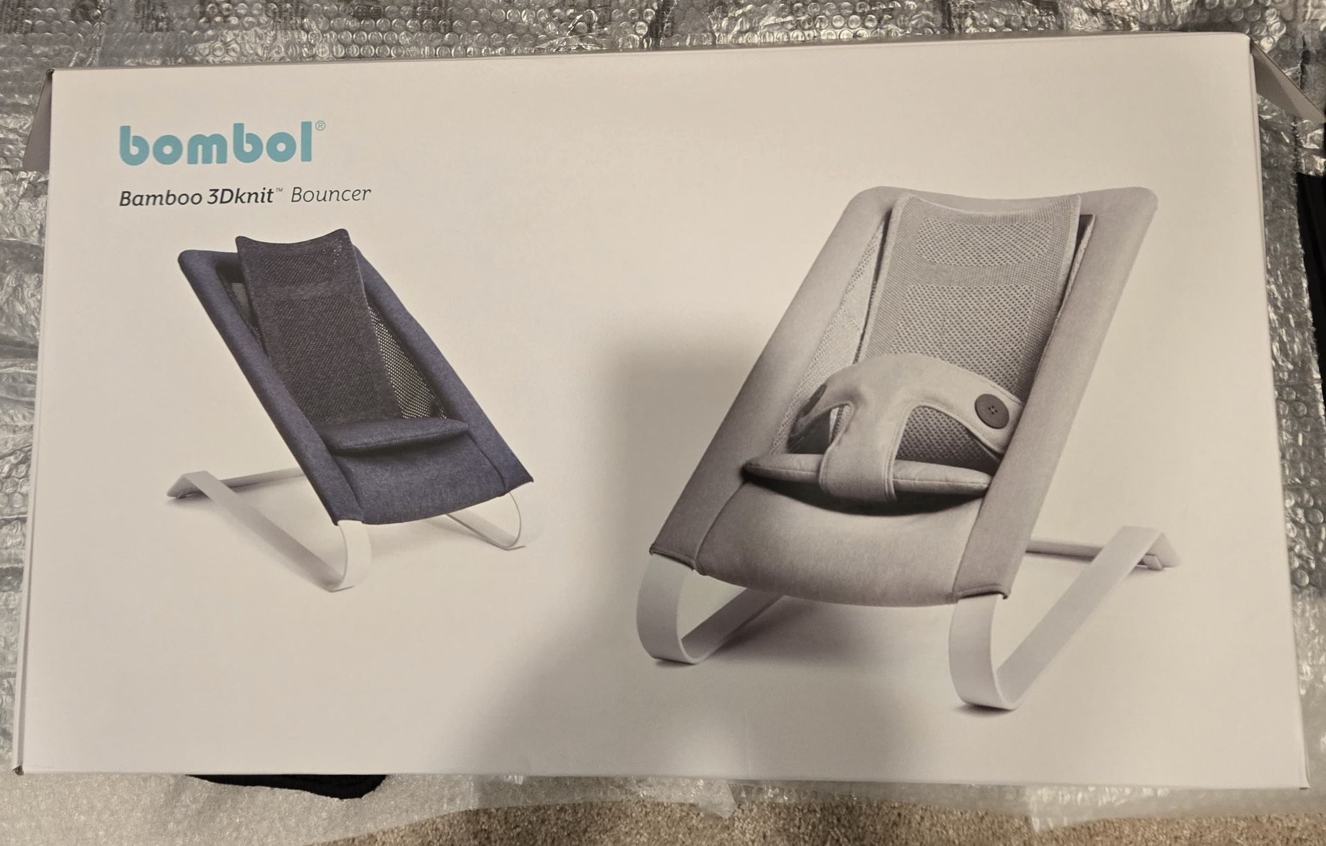 Bombol Bamboo 3D Knit Bouncer in blue in perfect condition. Bamboo 3Dknit™ transforms from a cradling hammock with bespoke support for newborns, to a comfy chair that stimulates a baby`s wriggling skills, to a lounger for 5-year-old toddlers.