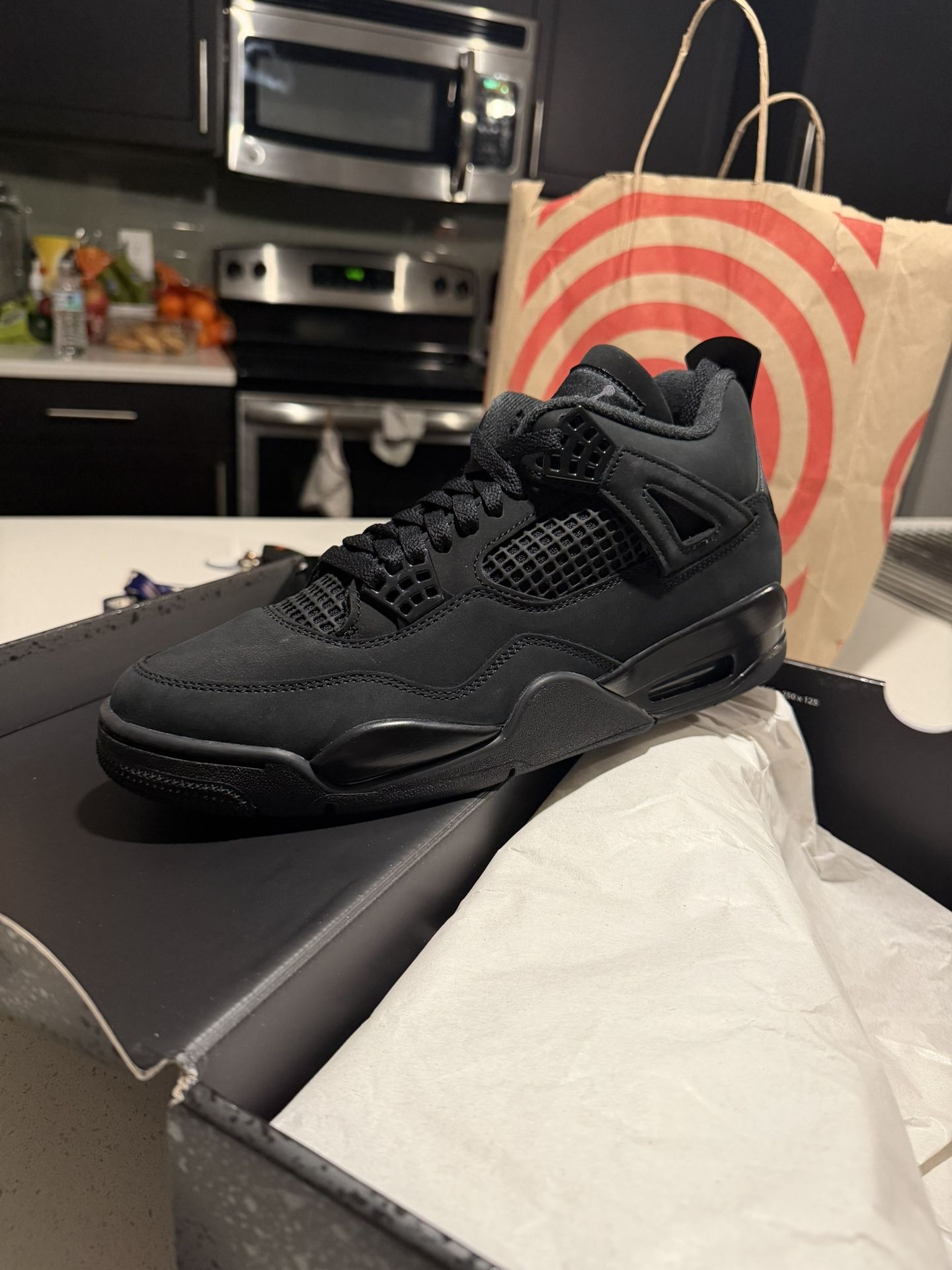 Have brand new Jordan 4 Black cat size 9.5 looking to trade for gamma 11 in a size 9.5 open to cash offers as well