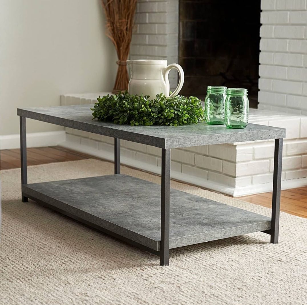 Cement gray coffee table and end table set. Great condition, barely used and is stain resistant