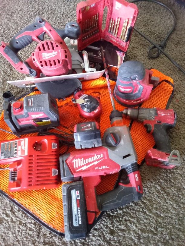 This deal includes , - M18 Red lithium xc5.0 battery - M18 Red lithium xc8.0 battery -SDS Rotary hammer - hammer drill - Cross line Lazer - 6-1/2"(165 mm) circular saw -