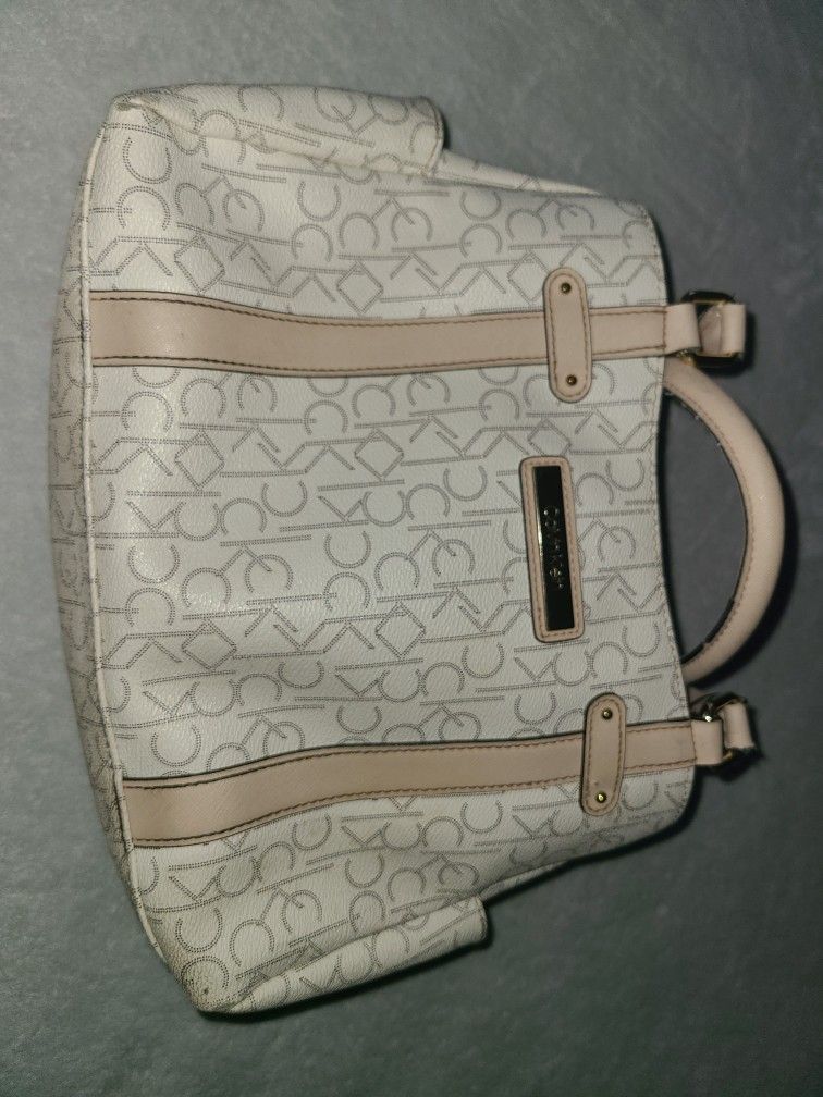 Woman's used Calvin Klein purse used but still in great condition has small stain inside see in picture smoke pet free home kaki color medium size