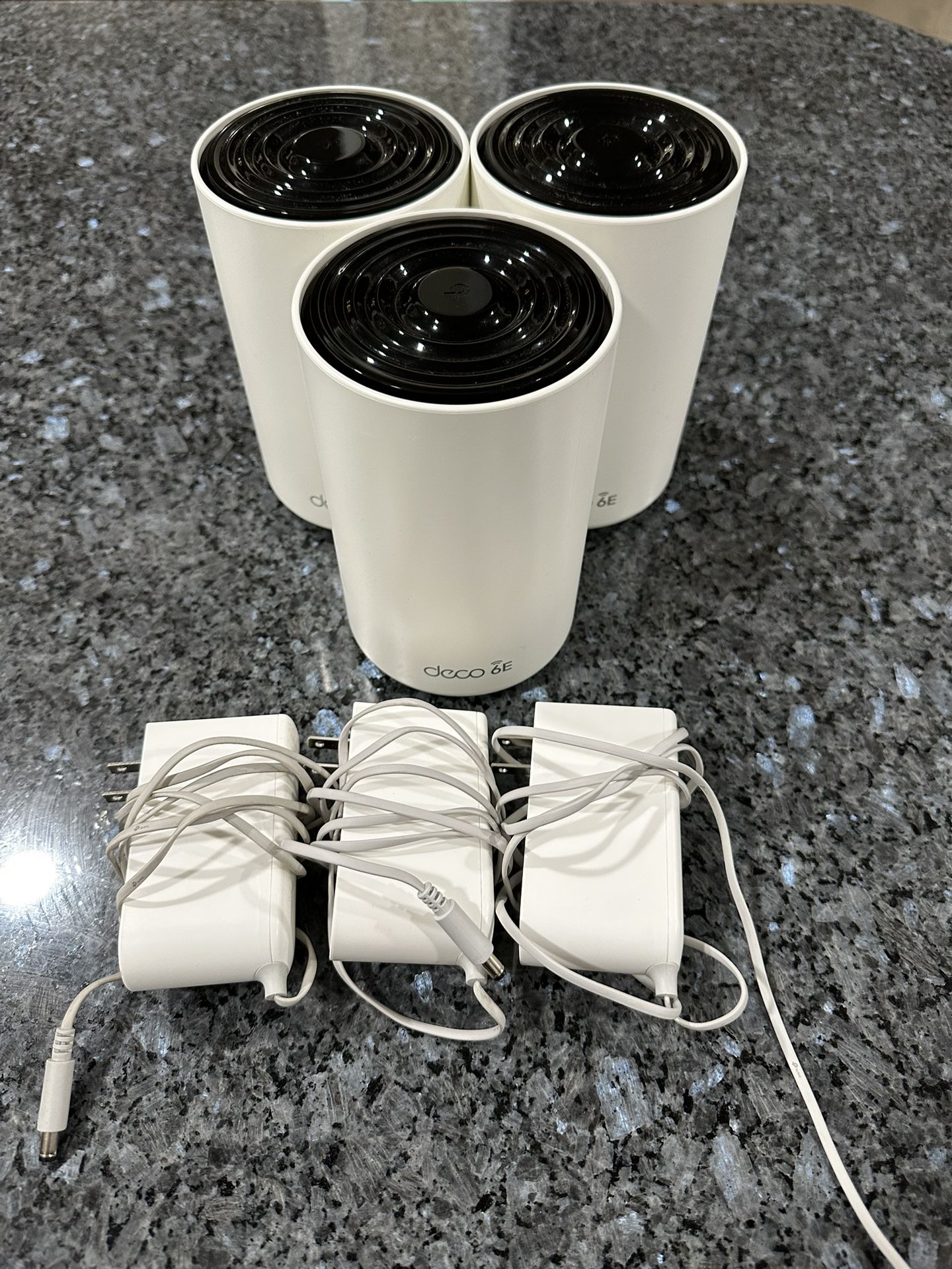 Went back to traditional router. Open to offers! TP-Link Deco XE75 Pro AXE5400 Tri-Band WiFi 6E Mesh System - 2.5G WAN/LAN Port, Covers up to 7200 Sq.Ft, Replaces WiFi Router and Extender, AI-Driven Mesh, 6GHz Band, 3-Pack WiFi router Internet mesh 6e