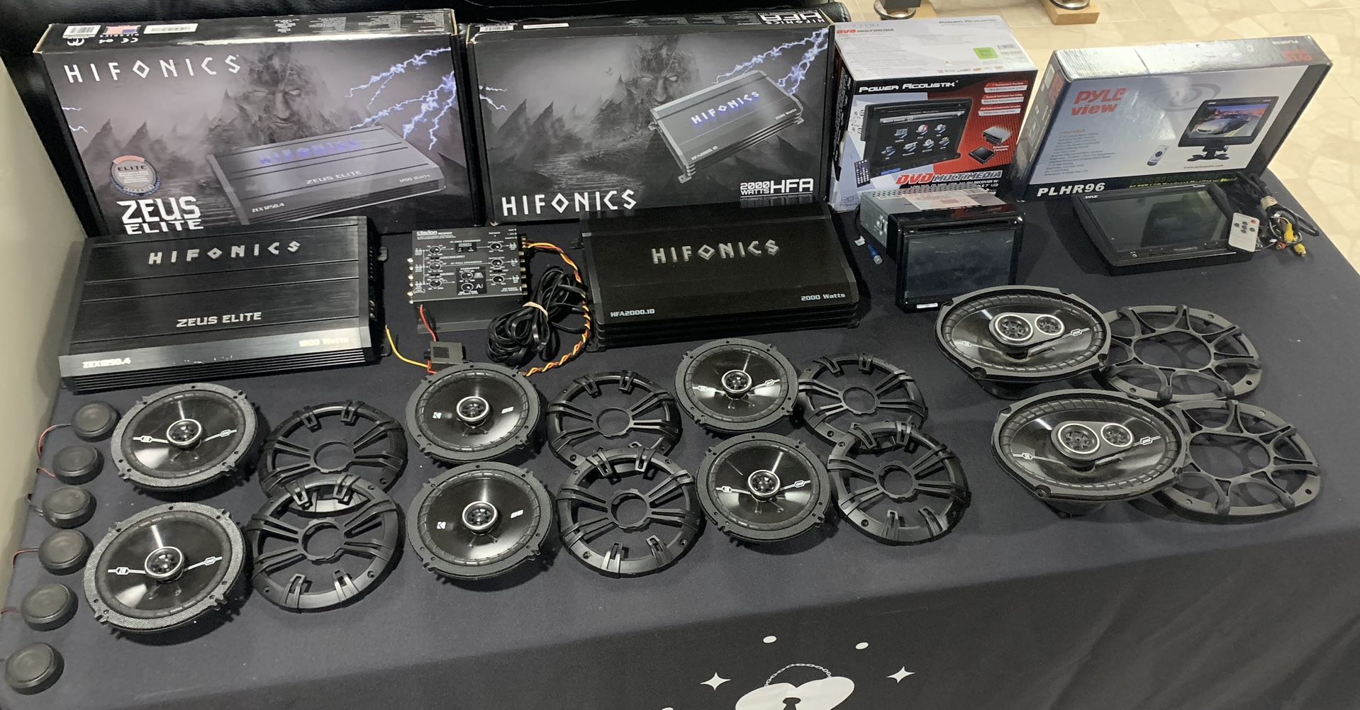 Looking for a concert in your car! Well here is the setup. Looking for $1250. All of it like brand new for the most part. Film still on monitors and radio. Let me know if your interested. Includes: 1. Power Acoustic Radio-7" Detachable big face 2. Pyle View 9" Console Monitor Screen 3 . Hifonic Amps(2000 Watt Bass, 1200 Watt 4-Channel) 4. Clarion 3-Way Crossover 5. (6) Kicker DS 6.5" w/Grille 6. (2) Kicker DS 6x9" w/Grille 7. (6) Tweeter
