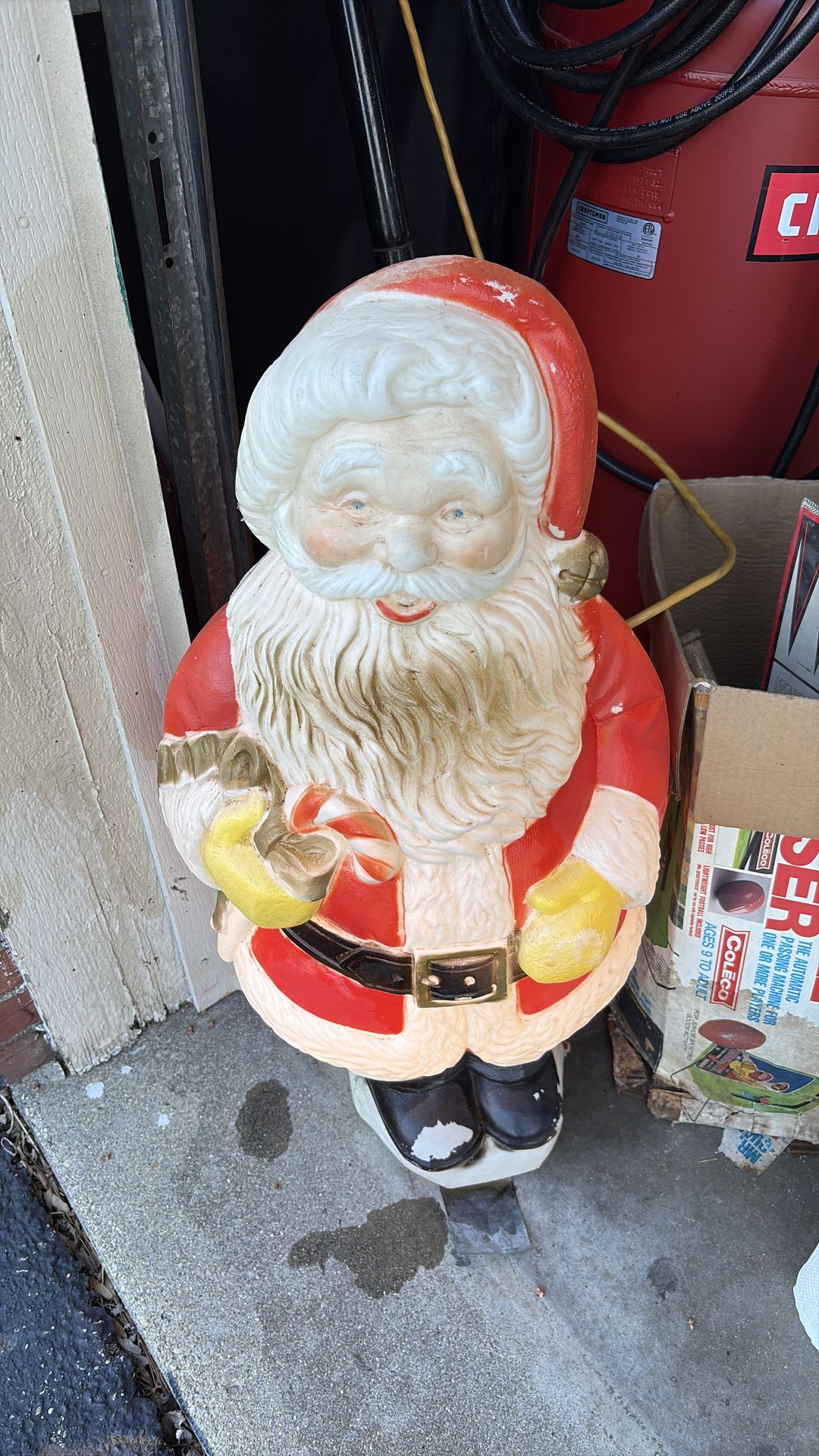 Vintage blow mold Santa stands 30” tall In working condition Has been in attic needs cleaned up a little bit and some of the paint has started to come of Asking $65 Must pick up