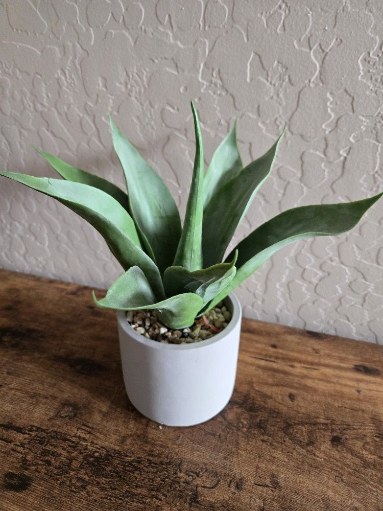 I’m clearing out some decor items before my upcoming move! This small faux agave plant is in pristine, like-new condition and is the perfect maintenance-free accent for a desk, nightstand, or shelf. The plant features realistic, broad green leaves with a natural-looking texture and is settled into a bed of decorative multi-colored pebbles. It comes in a minimalist, matte grey cylindrical ceramic pot that fits seamlessly with Modern, Industrial, or Boho decor styles. Since it’s artificial, it stays looking vibrant year-round without any need for watering or sunlight—perfect for those low-light corners of your home! Key Info Buyers Look For: Zero Maintenance: Realistic artificial foliage that never needs care. Quality Materials: Features a sturdy ceramic planter and decorative stone topping. Versatile Size: Ideal for small spaces like a computer desk or bathroom vanity. Condition: Meticulously maintained in a smoke-free home; no dust or damage to the pot. Available for pickup in Phoenix