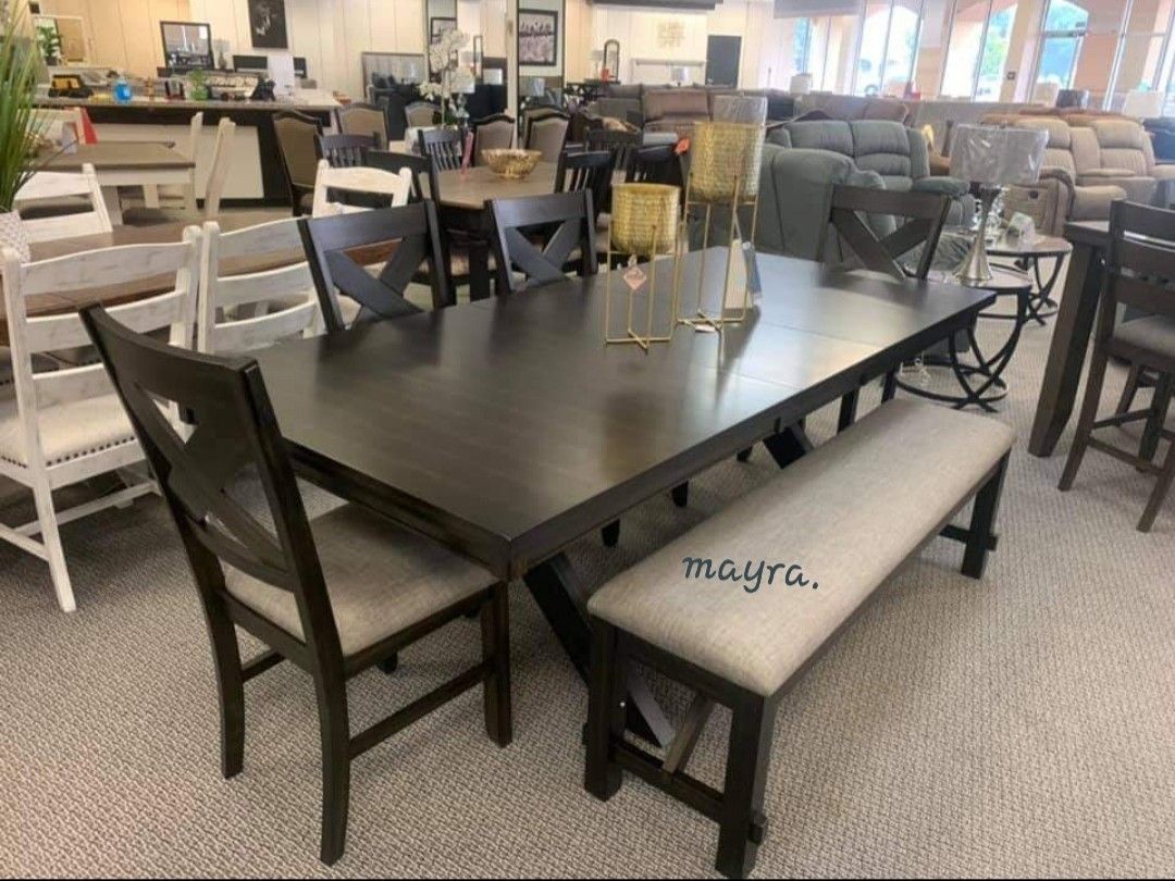 Havana Espresso/Gray Dining Set , Table, Chairs Bench, Comedor