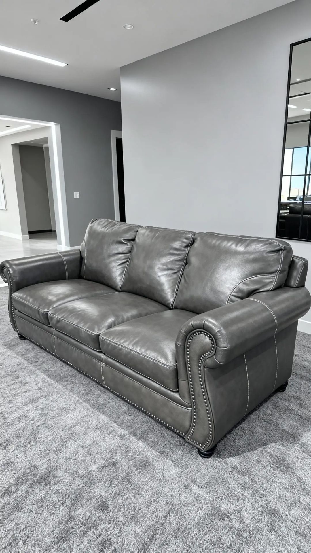 Premium Grey Leather Couch – Free Delivery Included Elegant nail-studded detailing with a modern, timeless design. Crafted from genuine leather that’s soft, supportive, and built to last. In amazing used condition with minimal wear — the quality is obvious the moment you sit down. Perfect for any living room that deserves both comfort and style. Free delivery with asking price. Browse my page for more high-quality couches available today.