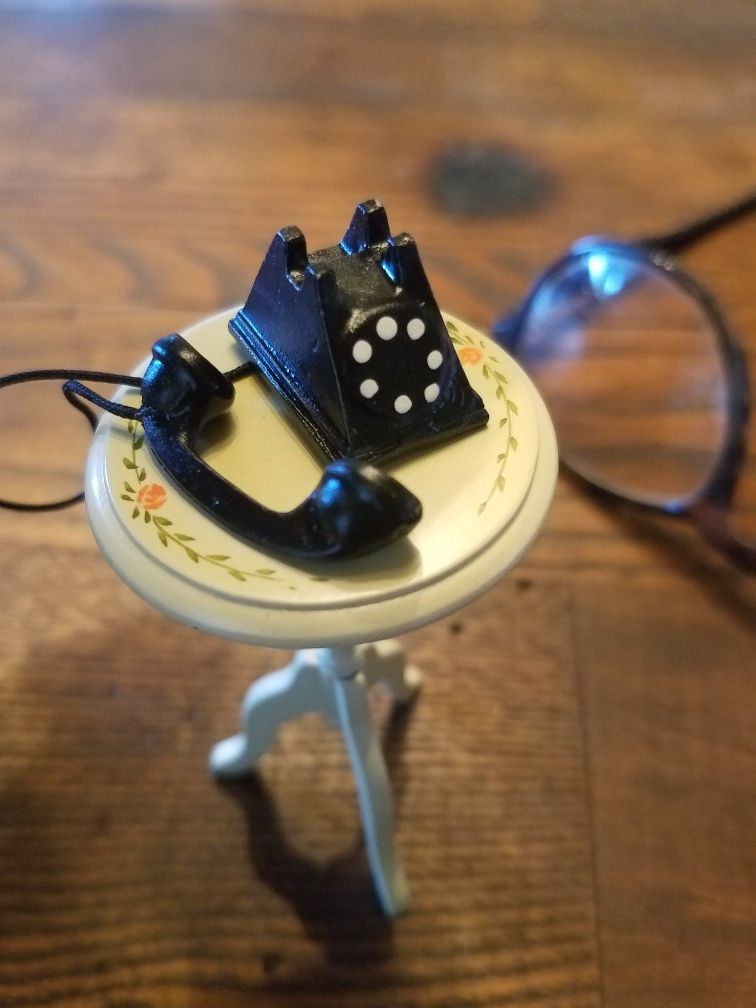 12/1 scale, my cat got jealous so you'll see Coty in these pics! Just the phone, not the table ( Table listed separately).