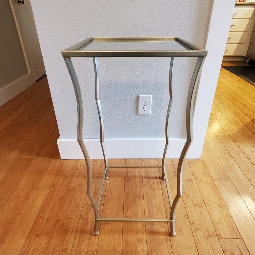 Nice light weight metal mirrored top Table, perfect for a plant or small little entry table. Powered gold finish. Purchased at Home Goods a couple years ago and now longer needed. Pick up only in Monroe, WA. CASH ONLY - no other payment options!