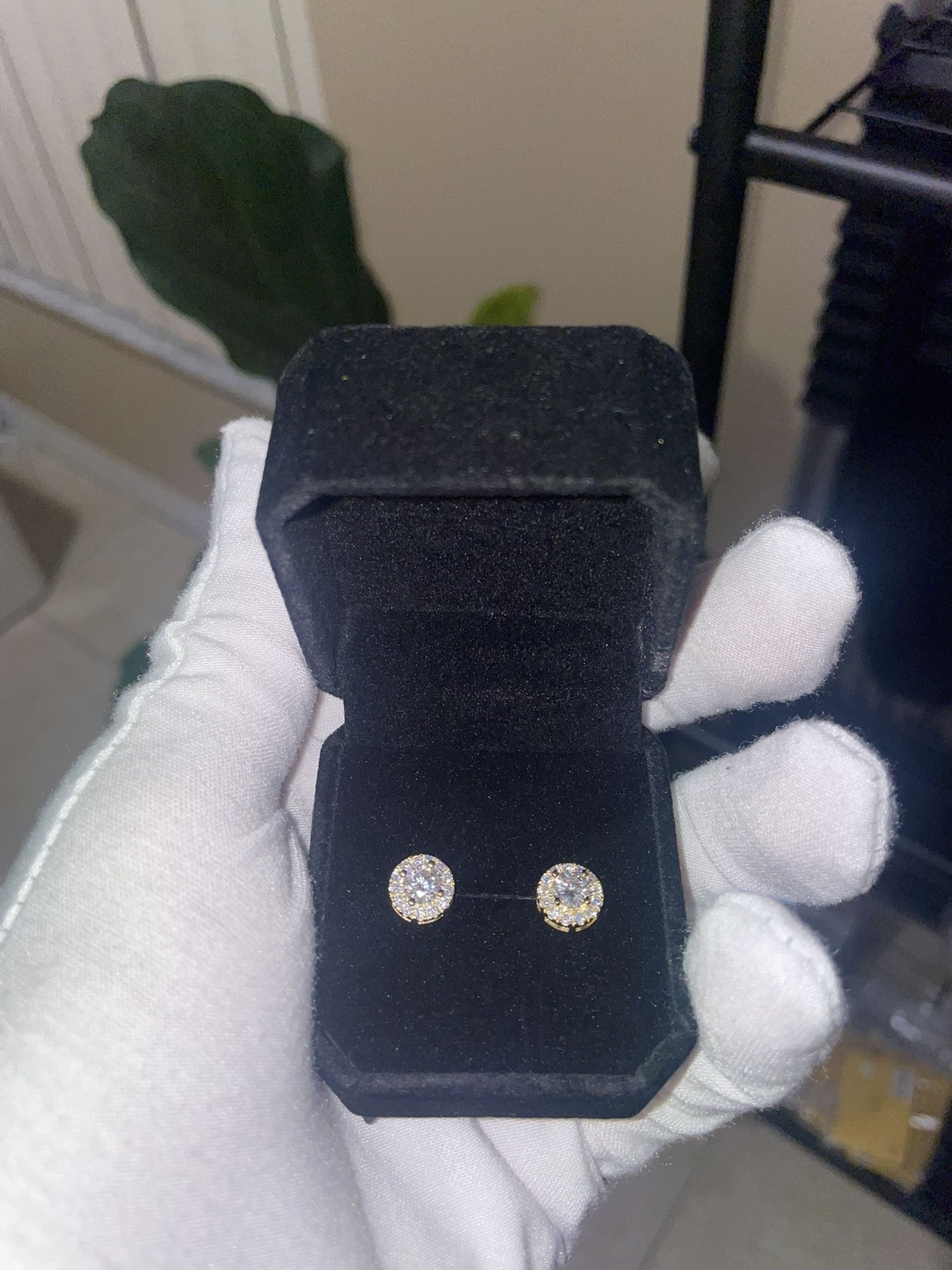 Brand new halo-style stud earrings set with GRA-certified moissanite stones for stunning sparkle and brilliance. Perfect for everyday wear or as a gift. Stone Details: • Moissanite: Lab-grown diamond alternative • Size: 5.0 mm • Carat Weight: 1.39 ct per pair • Shape & Cut: Round Brilliant, Excellent cut • Color: D (colorless) • Clarity: VVS1 • Proportions: Depth 60%, Table 58% • Crown Height / Angle: 11.5% – 31° • Pavilion Depth / Angle: 43% – 40.2° • Girdle: Thin to Medium, Faceted • Culet: 98.5° • Finish: Polish Excellent, Symmetry Excellent • Fluorescence: None • Inscription: (contact info removed)62 Earring Features: • Base Metal: 925 sterling silver, gold plated • Closure: Screwback for secure, comfortable wear • Design: Halo style – central stone surrounded by sparkling smaller stones These earrings catch light from every angle, giving a luxurious, diamond-like look at a fraction of the price.