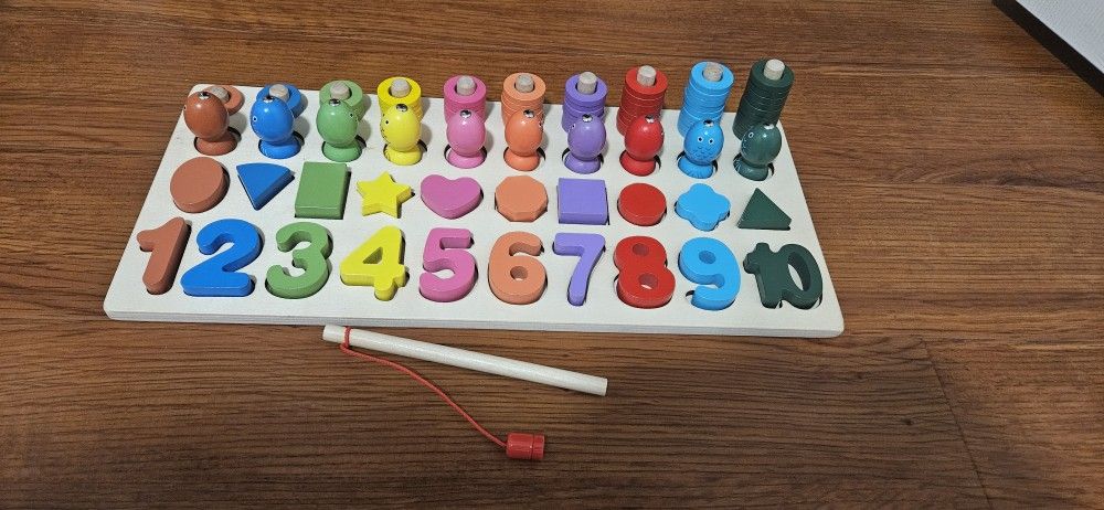 Wooden Montessori Learning Activities For Shapes,colors, Numbers In great and clean condition. All parts are included with a storage bag. Pet free, smoke free, shoes free house