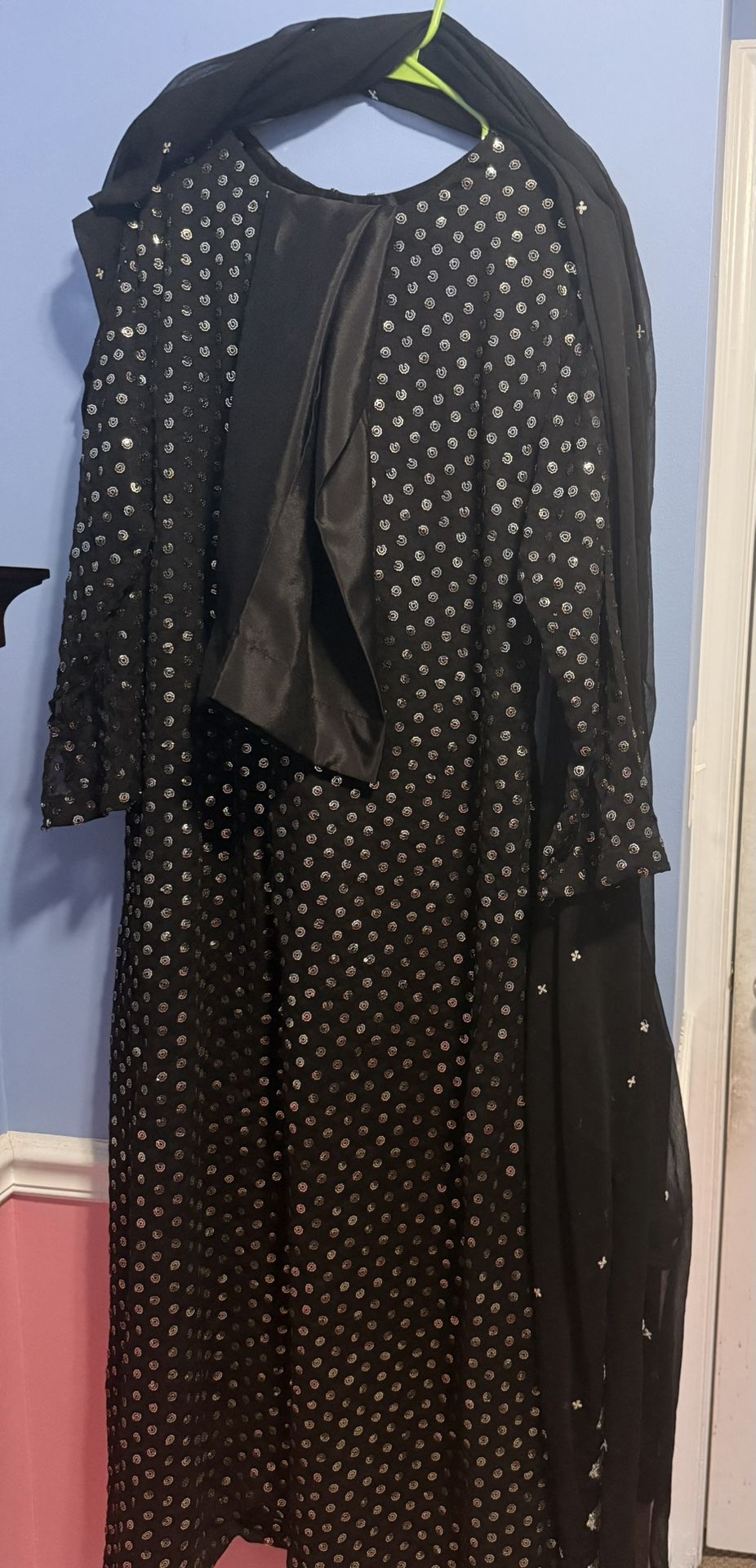3 piece black and gold sequined shalwar kameez Size: large Brand: ajha jaan