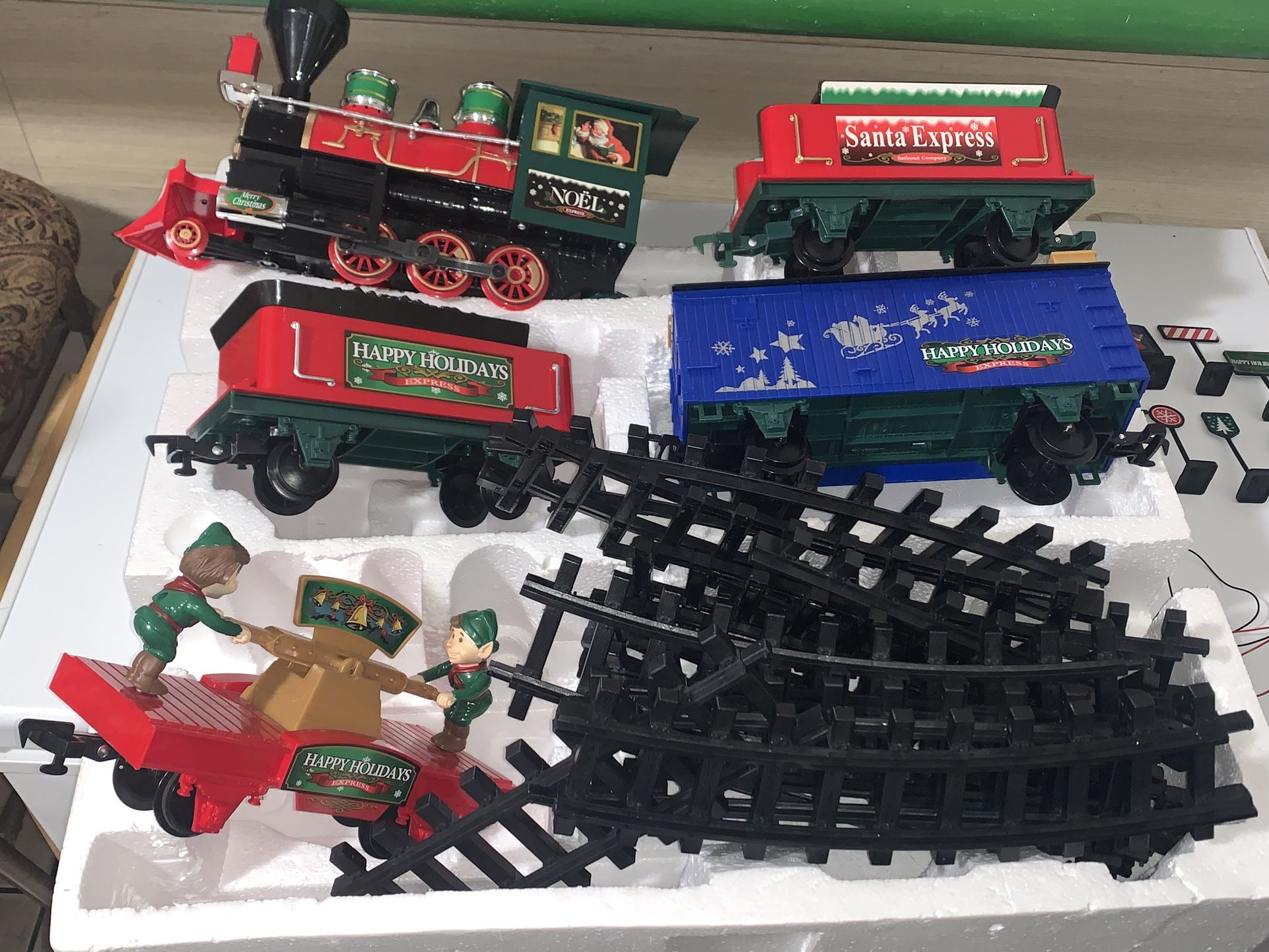 Christmas Santa Express Train with Caboose and Tracks Tested and works Works with 4 C batteries
