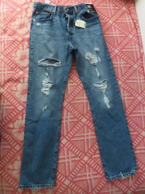 new with tags LEVI'S 501 original Straight in Hits Different Big E 30x32 (31x32.5) NWT waist 31 length 32.5 hip/thigh 11 ankle 7.5 rise 12