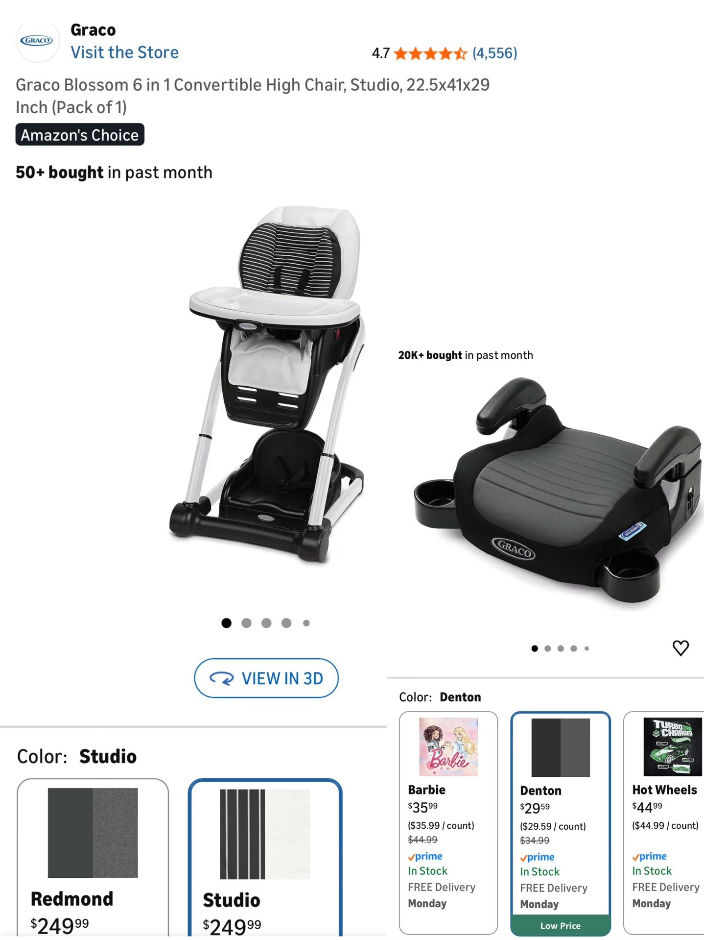 Graco baby high chair, original price $249.99 + tax, Crace car seat, original price $29.59+ tax . Now $50 for both. You need to pick up by yourself!