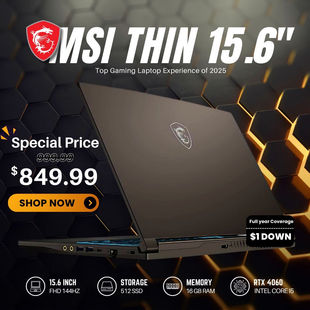 🎮 MSI Thin Gaming Laptop – ¡Ahora $849 o $1 de Entrada! 💥