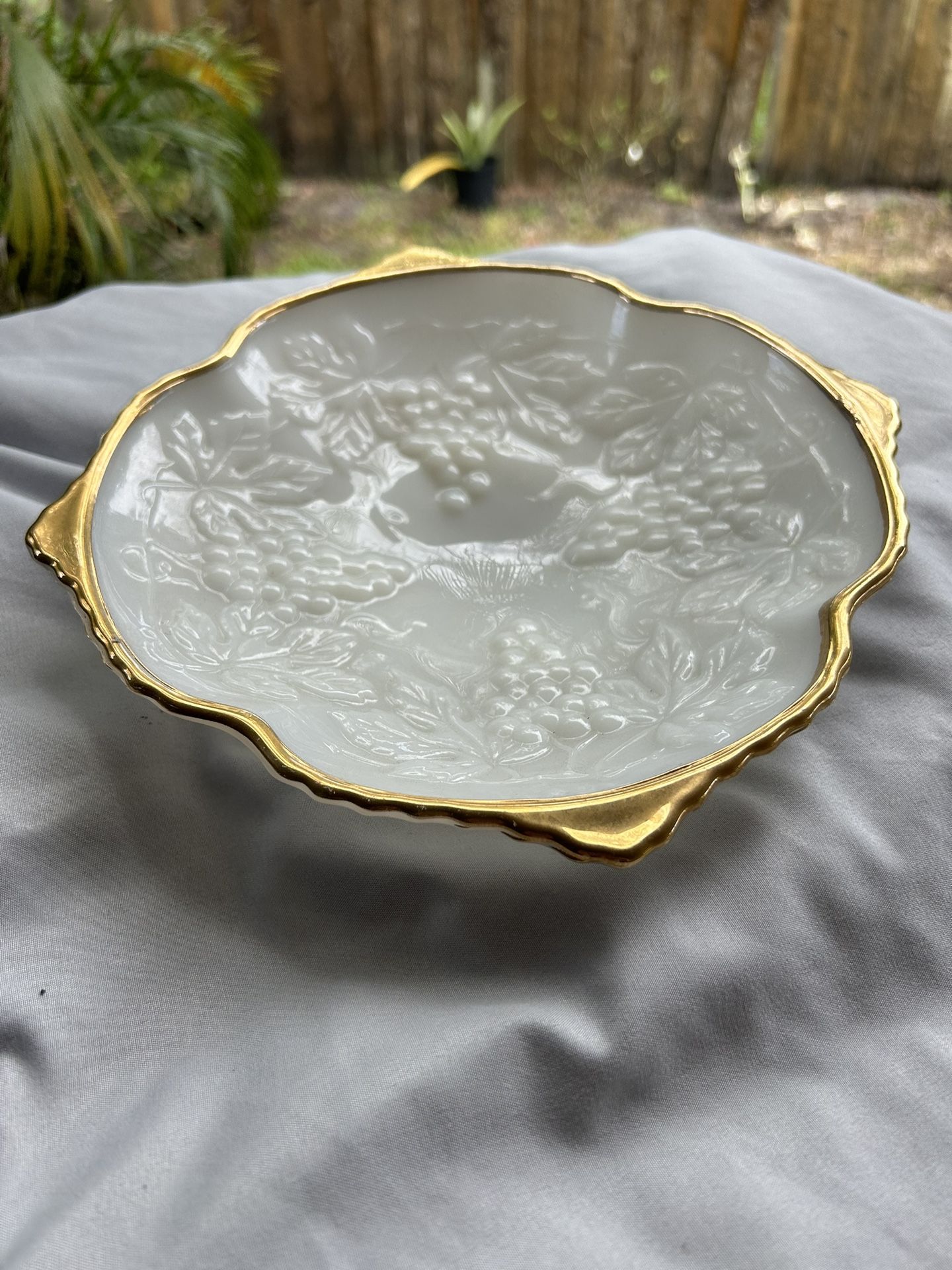 Milk Glass Gold plated Flat Dish