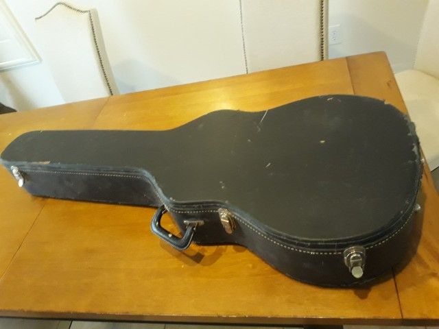 Fits Classical Acoustic guitars and most electric guitars Measurements: 44" long and 16" at the widest point Does not include guitars shown in the pictures Hard case Cash only