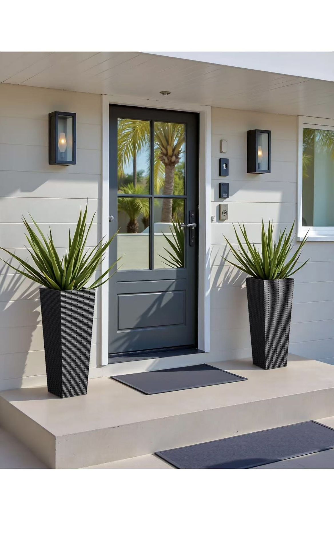 Greesum 24 Inch Tall Plastic Planters with Rattan Texture – Set of 2, Detachable Inner Pot & Drainage Holes, Indoor/Outdoor Decorative Flower Pots for Large Plants, Trees, Patio, and Garden, Black$40